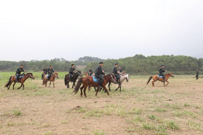 Cán bộ, chiến sĩ của Bộ Tư lệnh CSCĐ đang huấn luyện ngựa