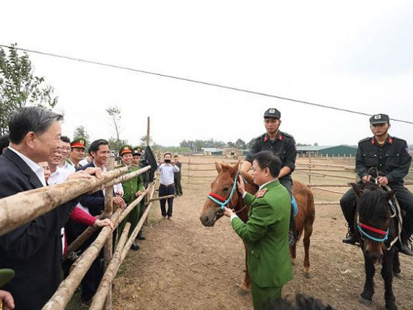Đoàn công tác của Bộ Công an do Đại tướng Tô Lâm, Ủy viên Bộ Chính trị, Bộ trưởng Bộ Công an, làm Trưởng đoàn vào chiều 2-3 đã đến kiểm tra, thăm hỏi, động viên các cán bộ, chiến sĩ Bộ Tư lệnh Cảnh sát cơ động (CSCĐ), chuyên gia huấn luyện kỵ binh tại Trung tâm Nghiên cứu và Phát triển chăn nuôi miền núi (xã Bình Sơn, TP Sông Công, tỉnh Thái Nguyên).